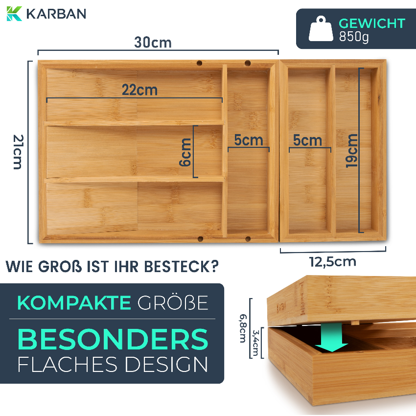 Dieser Besteckkasten (nur 30×21 cm) nutzt begrenzten Platz optimal aus.
